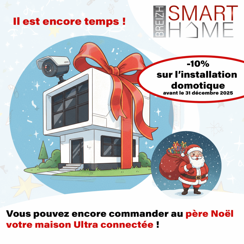 Profitez de -10% sur votre installation domotique avant le 31 décembre 2025. Après, le Père Noël vous passera un savon pour votre lenteur (et il n’y aura plus de réduction ).